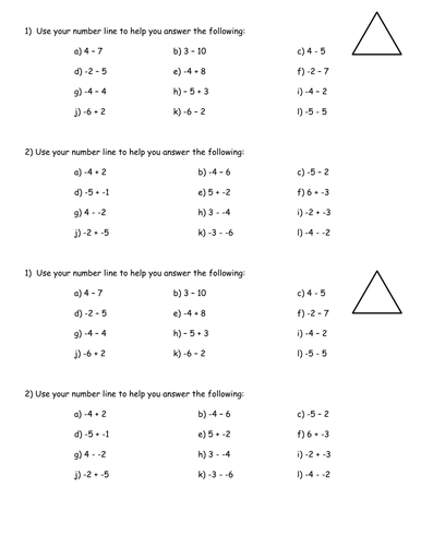 Negative numbers worksheet - Liveworksheets.com Live worksheets > English > Math > Numbers > Negative numbers. Negative numbers Negative numbers ID: 1105229 Language: English School subject: Math Grade/level: 4-5 Age: 9-11 Main content: Numbers Other contents: numbers Add to my workbooks (18) Add to Google Classroom Add to Microsoft Teams Math Worksheets: Number Line: Number Line with Negatives (Second Worksheet) Property Value; Description: Number Line with Negatives: (Second Worksheet) Resource Type: Worksheet: US Grade Level: 2nd Grade, 3rd Grade, 4th Grade, 5th Grade, 6th Grade Search | Negative Numbers | Page 1 | Weekly Sort - Math-Drills Thank you for using the Math-Drills Search page to find math worksheets on a topic of your choice. Enter a search term in the box below and click on the Search button to start a new search. ... (-15) to (+15) (Negative Numbers in Parentheses) (395 views this week) Adding Integers from (-15) to (+15) ...